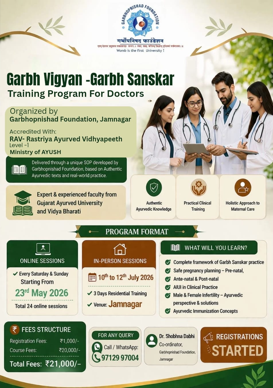 After attending training program, topic of "Garbha Sanskar" was clear in my mind. all the contents were well explained. I would suggest other doctors to attend the training program, it is very useful.